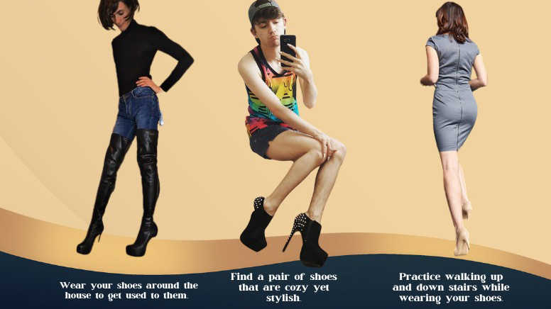 Wear your shoes around the house to get used to them. This initially helped me, allowing me to adjust to walking in heels.