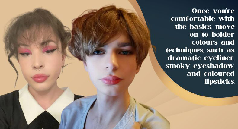 Once you’re comfortable with the basics, move on to bolder colours and techniques, such as dramatic eyeliner, smoky eyeshadow, and coloured lipsticks. These can completely transform your look and make you stand out in any room.