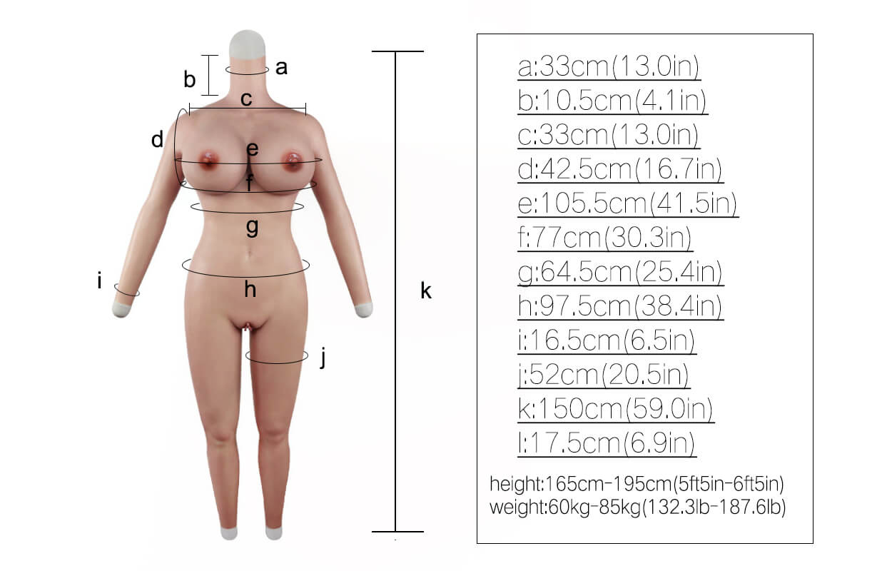 The entire suit is made of a special type of silicone. It can adapt to different body types since it stretches a lot. Its texture, combined with the way it reflects light, creates a perfect illusion, resembling real skin. As for the breast forms, they can be filled with either silicone gel or elastic cotton. The former feels more real to the touch and responds to gravity. However, the latter is lighter and not as expensive.