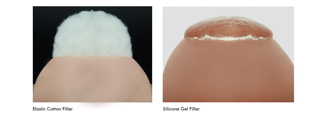 These breast forms are made of top-quality silicone material. It’s highly stretchable, and identical in appearance to real skin. As for the fillings, two options are available. The elastic cotton is light in weight, allowing for longer periods of use while providing realistic stuffing. The silicone gel, on the other hand, is heavier, but much more realistic as it responds to gravity as real breasts would.